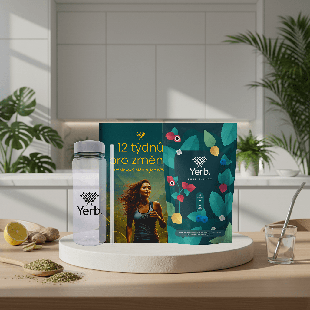Najdeš zde vše, co potřebuješ pro svůj první zdravý rituál a zvednutí své energie: Yerb, láhev skleněné brčko s čistící sadou a plán na 3 měsíce, který když budeš dodržovat, garantujeme zmírnění únavy a zlepšení kvality života.