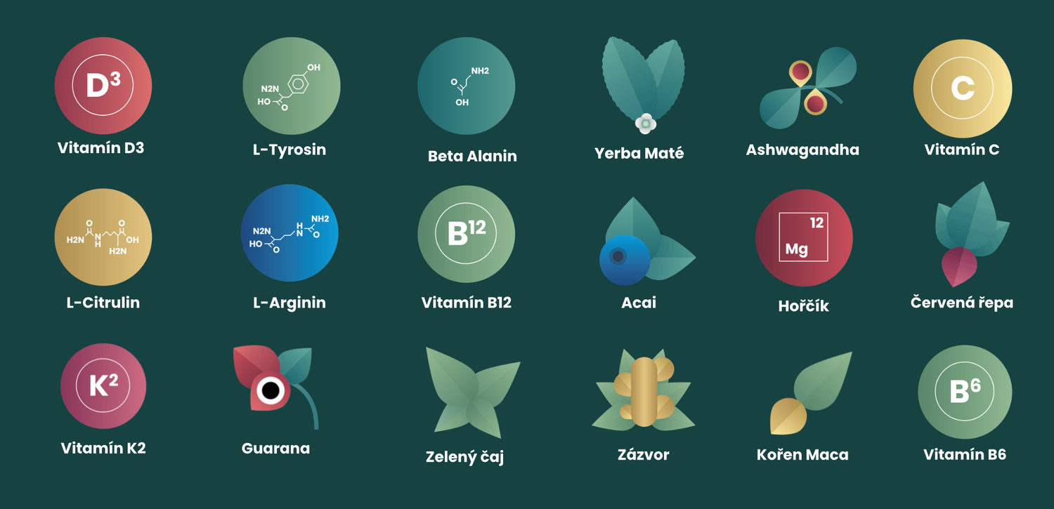 Tvůj výkon nezačíná v tělocvičně, ale v buňkách. Proto Yerb obsahuje funkční směs složek, které pomáhají tělu lépe regenerovat, podpořit imunitní obranu a udržet hormonální rovnováhu – i ve stresovém období.