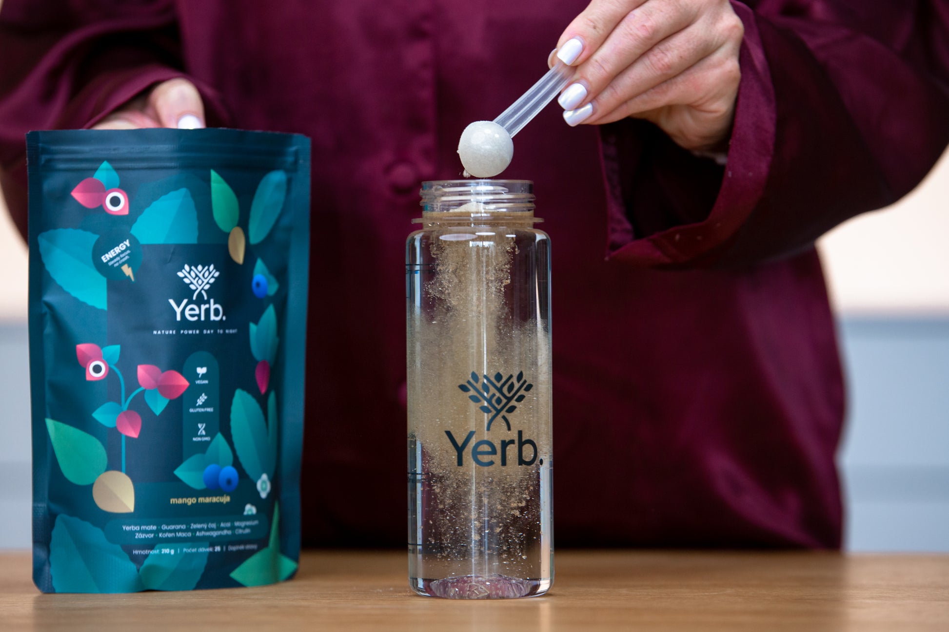 Ano, Yerb obsahuje přibližně 80 mg kofeinu z přírodních zdrojů, jako je Yerba Maté, Guarana a Zelený čaj. Díky bylinnému složení nezpůsobuje crash ani úzkost.