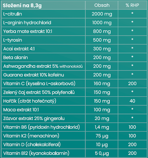 Balení obsahuje 25 dávek. Dávkování si ale můžete upravit podle sebe, jak chcete intenzivní nástup energie. Maximálně však 2-3 dávky denně, stejně jako to máte s kávou.