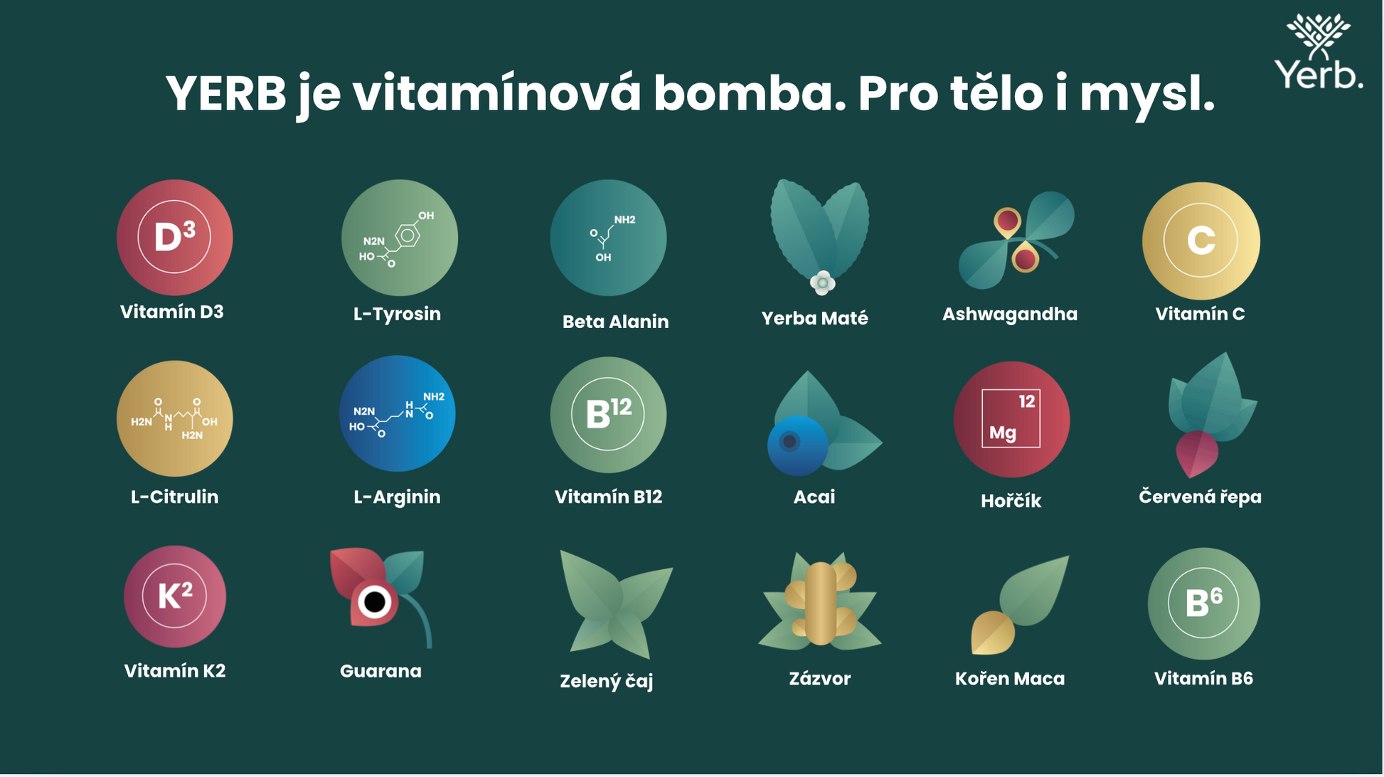 Ano, Yerb obsahuje přibližně 80 mg kofeinu z přírodních zdrojů, jako je Yerba Maté, Guarana a Zelený čaj. Díky bylinnému složení nezpůsobuje crash ani úzkost.